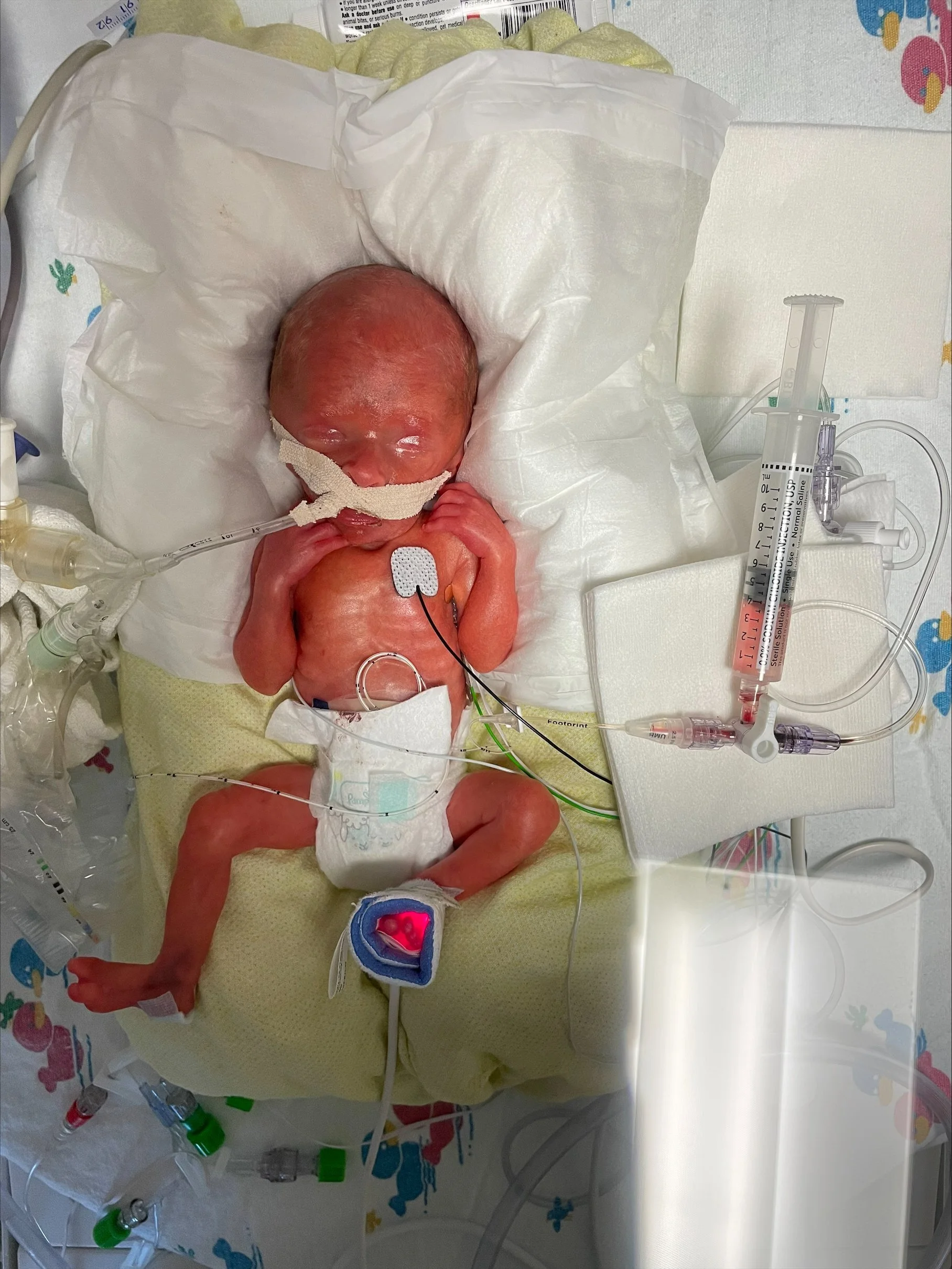 " I was going for my gestational diabetes test at 26 weeks when the nurses looked concerned after taking my vitals. They then told me to lay down in a room and wait for the doctor. The doctor came in with some papers and told my husband to drive me straight to the hospital that was an hour away. When I got there they immediately put me on magnesium and gave me steroid shots. My blood pressure was 220/175. They told me they were keeping me in the hospital until 32 weeks where I would have to deliver. I only lasted a week and had an emergency cesarean at 27 weeks. This was after they dilated me for hours and I had 3 epidurals. My baby was 1lb 6oz and ended up being a boy after being told the whole time I was having a girl. (His name is Hunter) He was in the NICU for 126 days and came home on oxygen. He was on a feeding tube up until a week before he came home. A month later we went for his check up and he ended up having an emergency VP Shunt surgery. Shortly after he had another surgery. Fast forward at 2 years old and he has his 4th surgery scheduled. He has therapy 3x a week and works so hard. He is such a smart boy and counts to 30, knows his ABC’s, colors, shapes, and animals! He is my miracle boy and I’m so so proud of him!