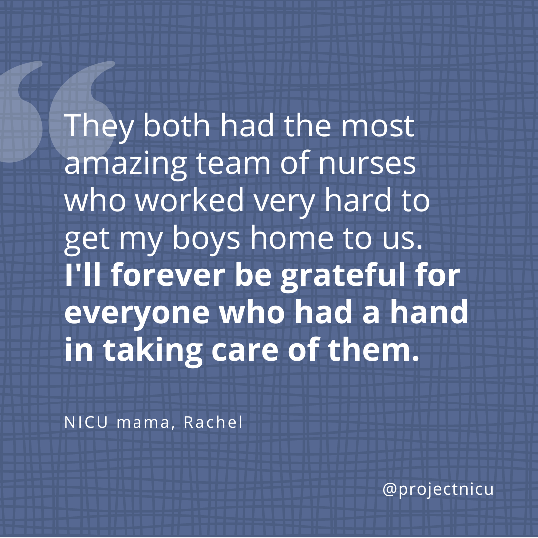 “Logan Matthew was born at 7:20pm on October 2022 10 minutes after his twin brother Luke. I was induced at 36w 0d due to Logan growing bigger then his brother Luke at a fast pace. Immediately after Logan was born he was placed on top of me for a few seconds before doctors noticed something was wrong. He was very blue and was having a hard time breathing. His oxygen was in the 60s and they immediately called a respiratory team and took him. A few minutes later some doctors came in and told us they would have to transport him by ambulance to a children’s hospital and that he had to be intubated. My heart shattered into a million pieces. We we’re prepared for some NICU time for Luke because we knew he might be on the smaller side and due to Logan taking more nutrients he might need a little bit of extra help. Luke was doing absolutely amazing band got to stay with me the entire time. They brought Logan in to see me in a box hooked up to so many wires and IVs and a tube down his throat. Next thing I knew he was off to the hospital were he would spend the next 25 days in the NICU. He was born in respiratory distress. The very next day Logan’s amazing dad went right to him to he by his side. We got the news that Logan’s air bags in his lungs were not doing what they were supposed to and he needed something called Surfaxin. We also found out he had a bad case of pneumonia. He was intubated for over a week and almost completely sedated. After they took his tube out he still had a long way to go, he was switched to cpap to help with his breathing because he was still breathing very fast. He had ng tube feeding him. Eventually he was able to get off a the cpap and onto a nasal cannula for a few days then finally he was on room air breathing on his own! He fought so very hard to get better and come home and 25 days later we got the call, Logan was doing great with his feeds, his breathing was stable and he could come home! The day Logan came home his bother Luke wasn’t there, he was in the PICU fighting off a very bad case of RSV, it was so bad he had to be airlifted from the same hospital they were born at to another hospital close to Logan’s, but that’s a story for another day. Logan and Luke are now 9 weeks old and perfectly healthy thanks to the amazing team of NICU and PICU doctors who cared for them. They both had the most amazing team of nurses who worked very hard to get my boys home to us. I’ll forever be grateful for everyone who had a hand in taking care of them. The NICU team will always have a special place in my heart" NICU mama, Rachel