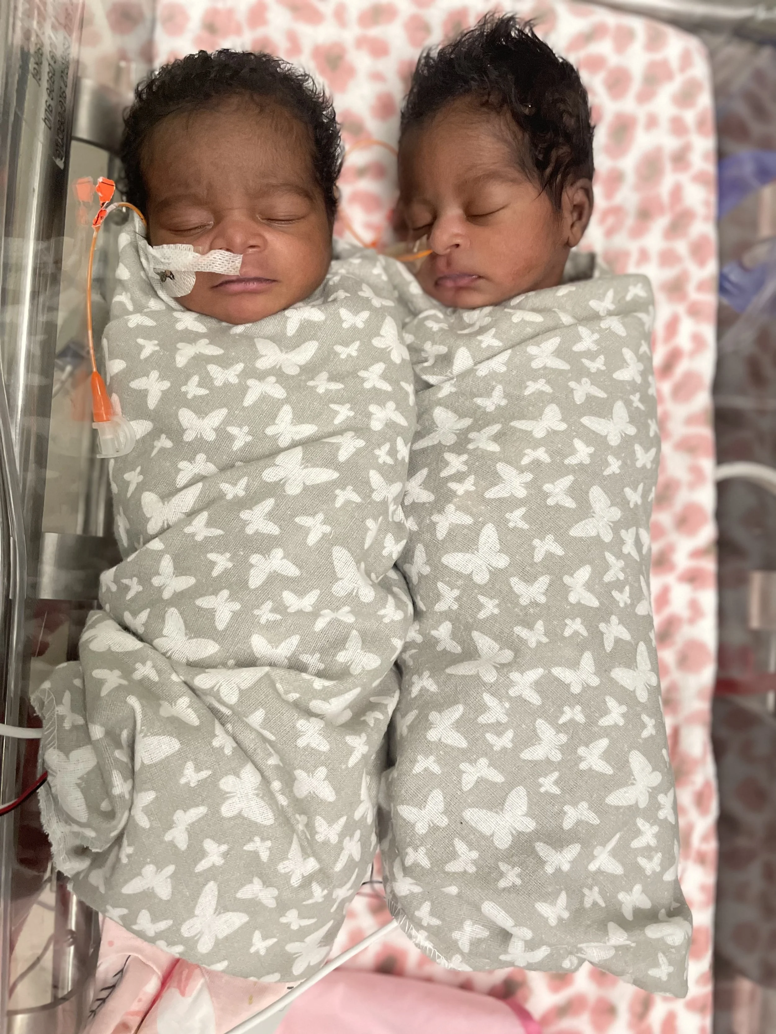 "August 18, 2023 I went to my weekly doctors appointment for my twin girls at 35 weeks pregnant and found out I was 4cm dilated. My doctor sent me to labor and delivery where I found out I was contracting every 10 mins. After hours of being connected to the monitor I was told that I was only dilated to 5 cm so I was being moved to the antepartum room. After 3 long days of still contracting on and off, I was being sent home because I didn’t make any progress. I went home and after 2 hours of being home and getting my kids ready for school, I started contacting again, this time only 3 mins apart and was rushed back to labor and delivery. When I made it my contractions slowed down to 5 mins and after hours they went back to 10 mins. My doctor came in and told me I was being sent back to the antepartum room. I spent a long week in that room, not able to walk around or do anything but lay in bed because they didn’t want me to contract more. The goal was to keep my twins in until I was 37 weeks. However, on August 25, 2023 my contractions became stronger so I was hooked back up to the monitors for almost 3 hours when they discovered that every time I contracted my daughters had a dip in their heart rates. I ended up having to give birth an hour later after finding out the news.